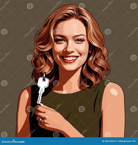 Young Woman Holding Key, Celebrating Success and Achievement, Vector